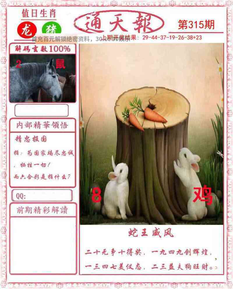 | 315期-精准八肖-虎鼠龙猴蛇牛猪狗-开: |